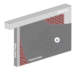 Perbaikan : Sebaiknya dibuat celah kecil antara dinding dengan balok atas untuk mengurangi tekanan,isi celah tersebut dengan styrofoam / karet kemudian untuk menyamarkannya dapat ditutup dengan list kayu atau gypsum.