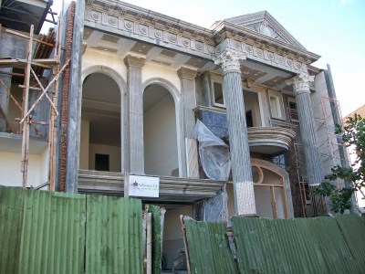 Greek corinthian columns, Roman arches, Italian blue tile facade.