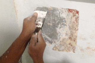 Jika ragu kupas beberapa bagian kecil acian dan plester.
