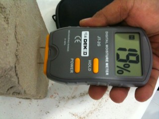 8. Jika plester terkontaminasi atau tidak terikat baik tembok tersebut harus di kupas. Cuci bata dengan desinfektan dan biarkan kering. Kadar air maksimum 15% yang diukur dengan PROTIMETER sebelum Anda memplester ulang.