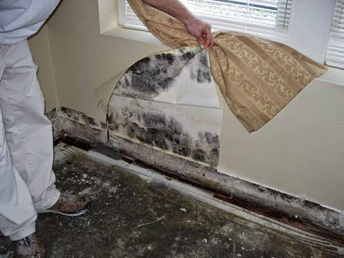 2. Langkah berikutnya adalah mengeringkan dinding secepat mungkin. lepaskan semua wall papper, kain dan bahan-bahan asesoris lainnya yang menempel di dinding. Bersihkan kembali dinding dengan disinfektan.