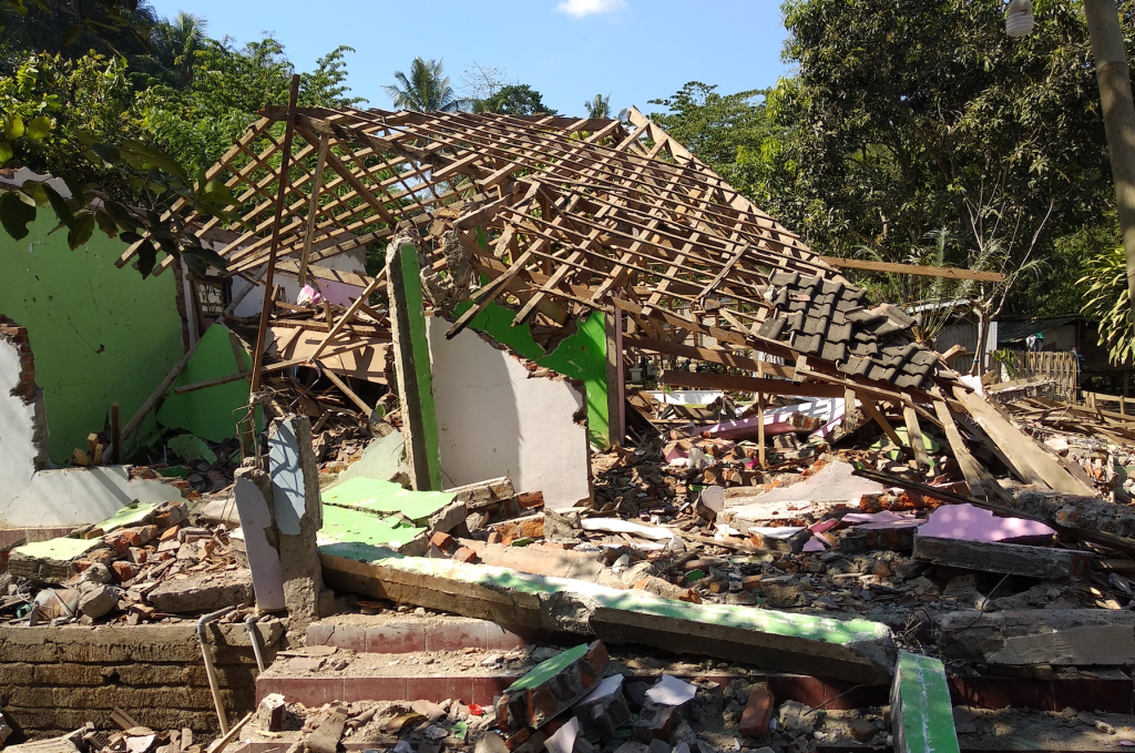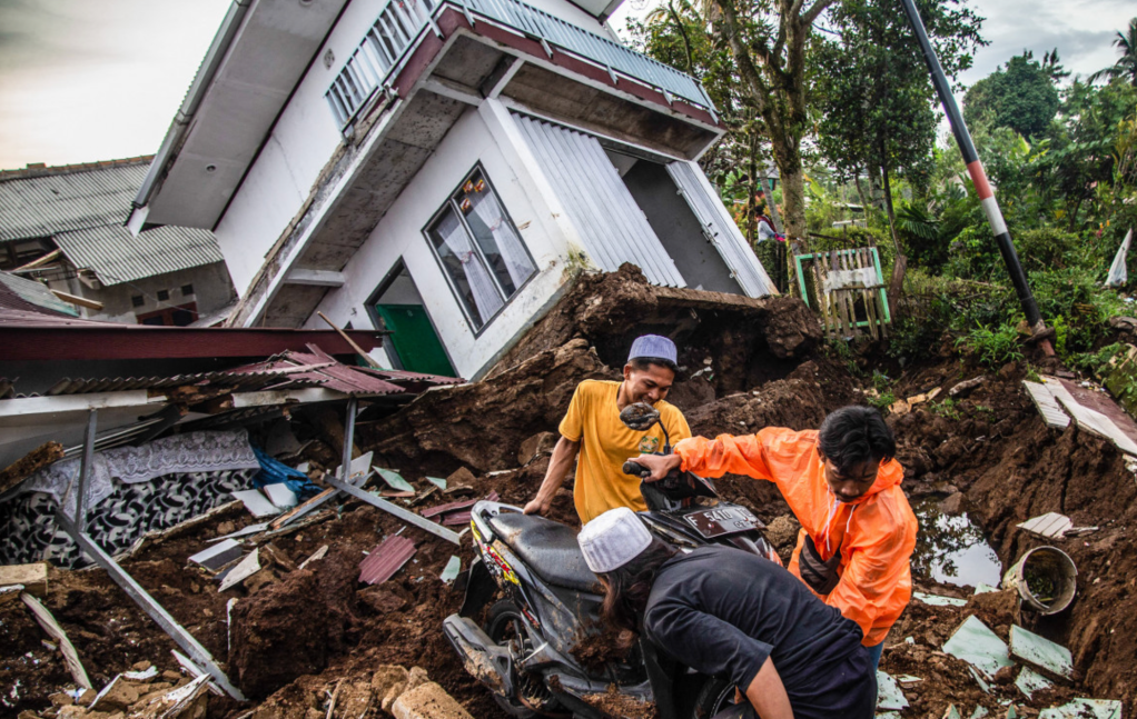 Struktur rumah yang kuat ini tidak dapat menghentikan kerusakan bangunannya akibat liquifikasi tanah, Tetapi dapat membantu menyelamatkan nyawa orang yang ada di dalamnya. Ini foto dari bencana Cianjur tahun 2022.