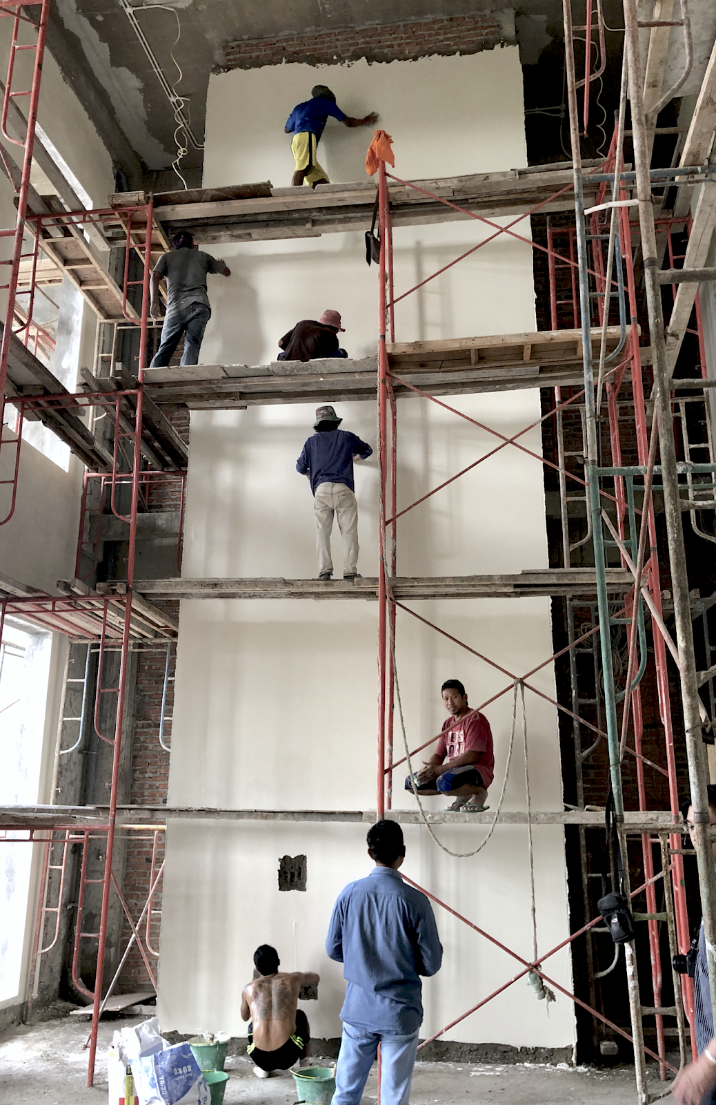 Gunakan produk render (plester finish) 5 – 8 mm yang mengandung pasir halus dan aditif semen didalamnya untuk pengerjaan lebih cepat.