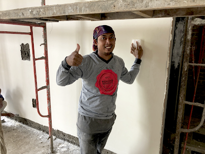 Dinding menggunakan panel bata ringan plus mortar dari Tiga Roda.