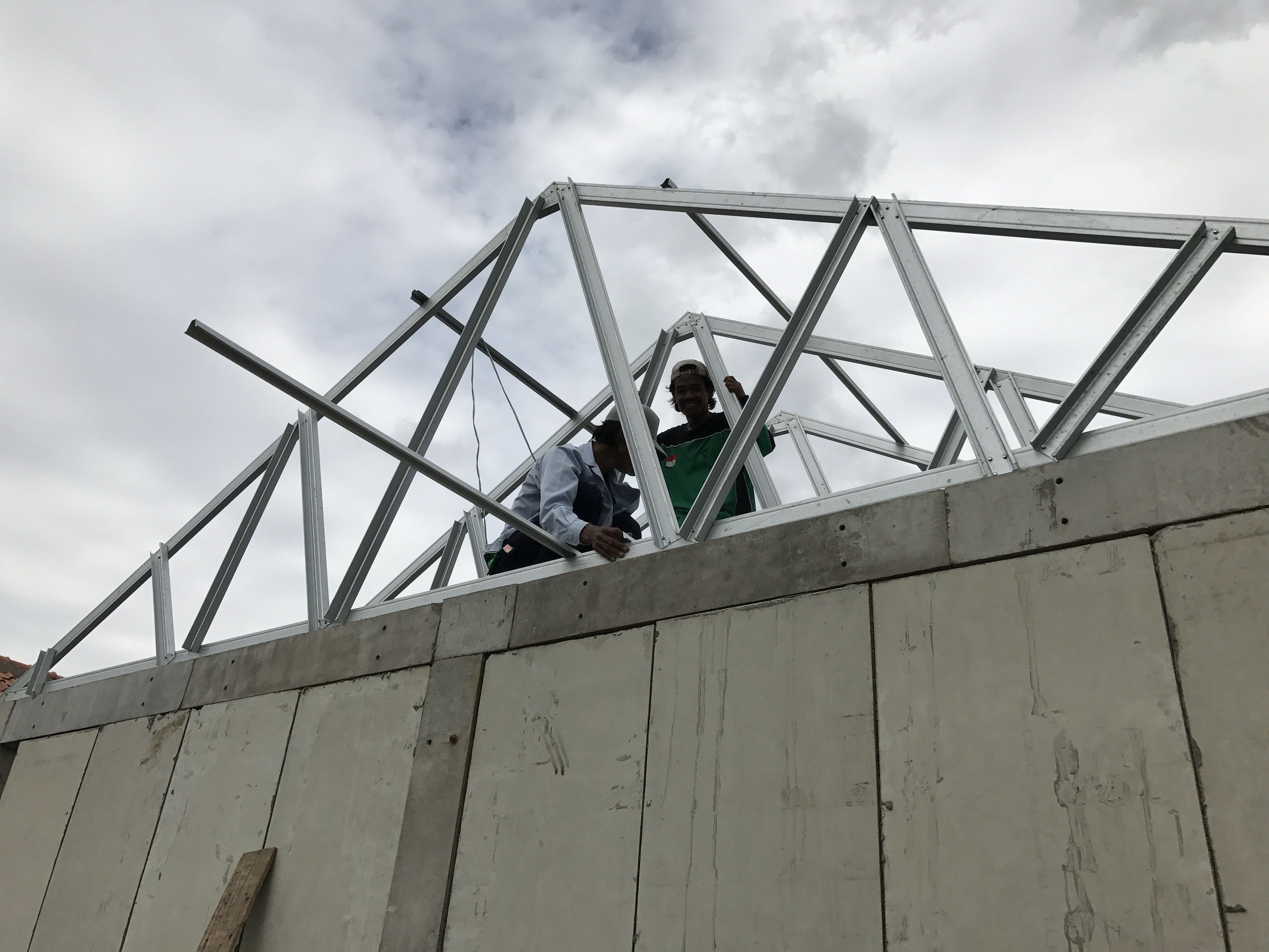 Rangka atap baja ringan direkomendasikan untuk mengurangi berat atap. Lembaran atap seng atau genteng ringan juga akan membantu mengurangi berat struktur atap.