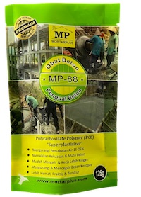 Lebih baik gunakan tipe PCE (Polycarboxilate Ether) seperti MP-80 dan MP-88 dari Mortarplus. (www.mortarplus.com)