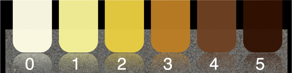 Uji Organik pasir dengan kimia soda api dilarutkan dengan air. Warna yang lebih gelap berarti kandungan organik yang tinggi. SNI mengatakan Organik harus 0 tetapi untuk rumah tidak apa-apa jika kurang dari 3.