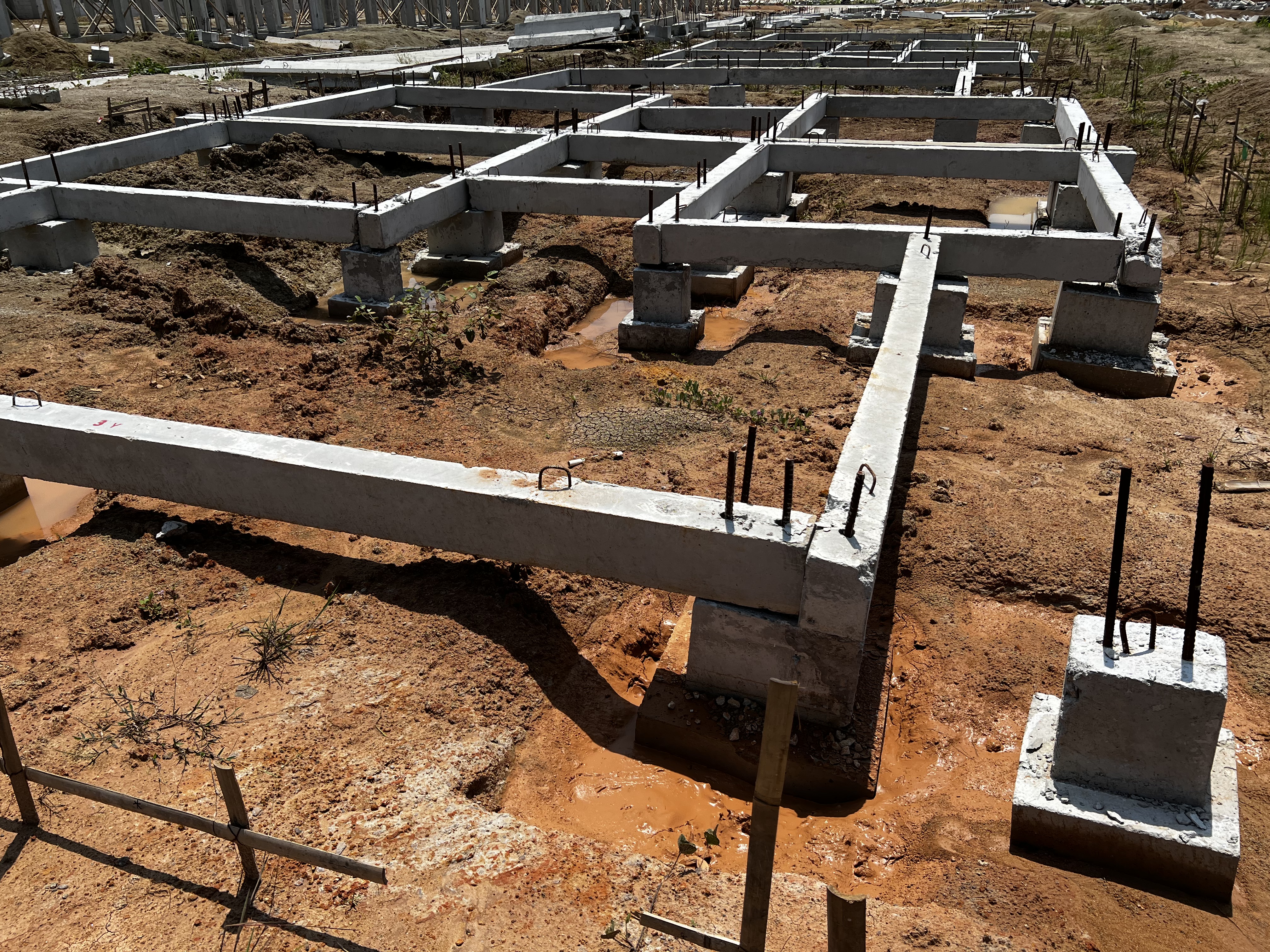 Desain ini disebut pondasi Cakar Ayam untuk kekuatan dan stabilitas yang lebih tinggi. Pondasinya lebih dalam dan berada di bawah masing-masing kolom struktur.