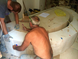 Granit dan ubin yang lebih lebar biasanya menggunakan epoxy dan lebih tahan air. Aplikasi ini lebih sulit karena harus melapisi sisi ubin menggunakan lakban.