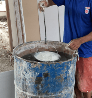 - Buat adukan lem keramik sesuai dengan perbandingannya