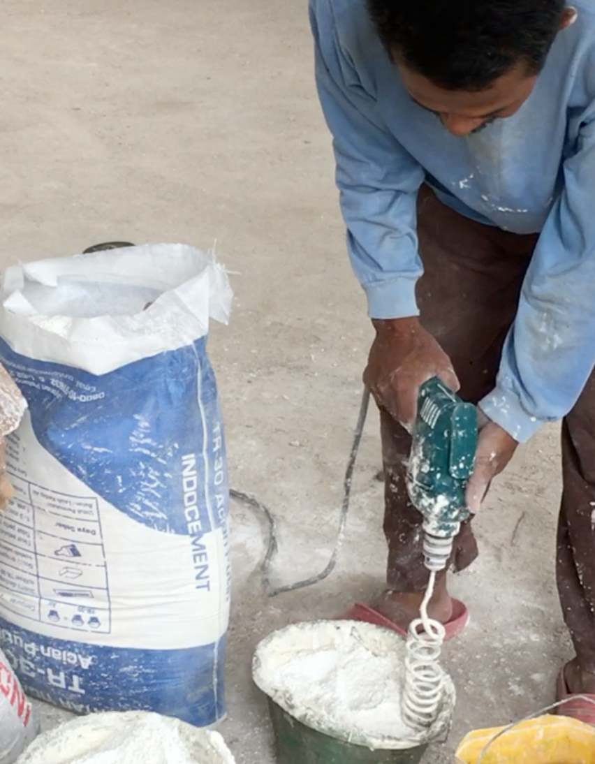 - Buat adukan lem keramik sesuai dengan perbandingannya