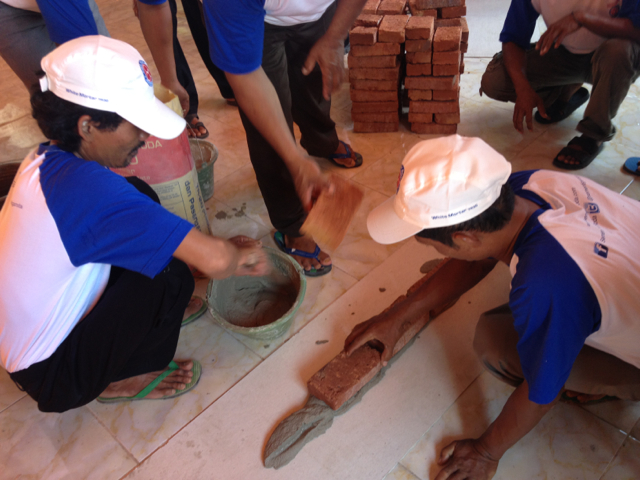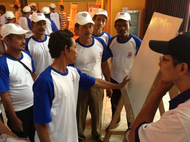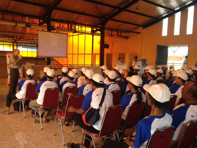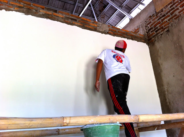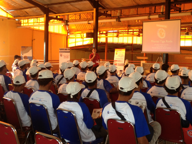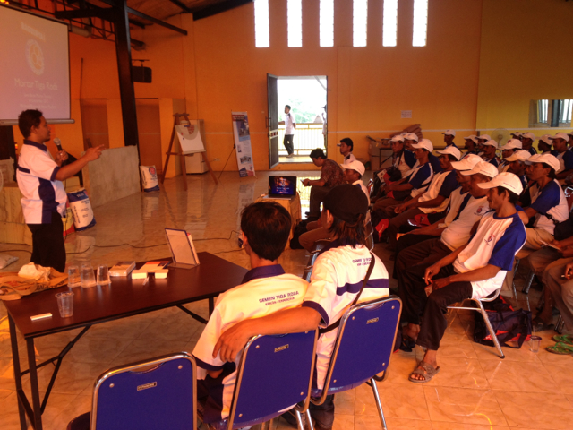A: Betul pak, kami memang harus terus membagi pengetahuan kepada masyarakat salah satunya mendemokan cara aplikasi yang baik pada dinding dengan cara memperkenalkan acian putih TR 30 produksi Tiga Roda