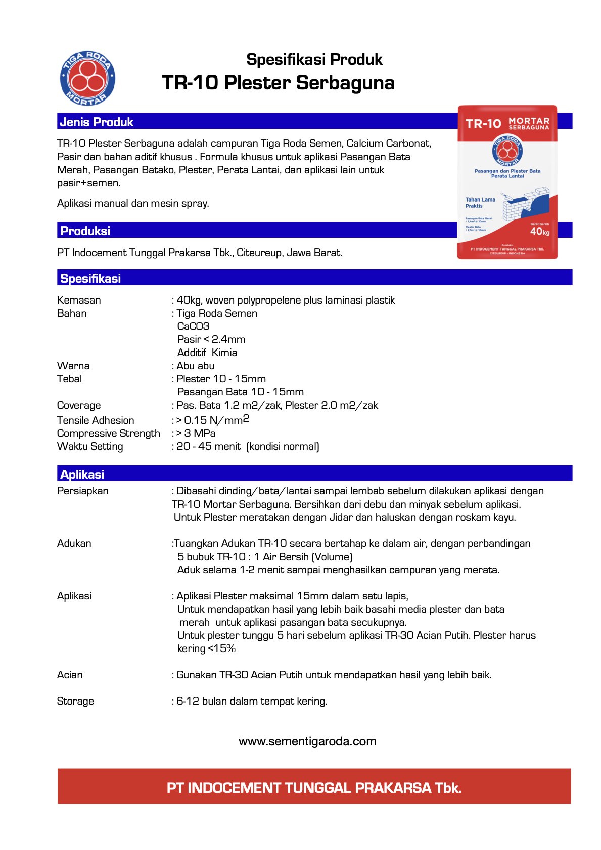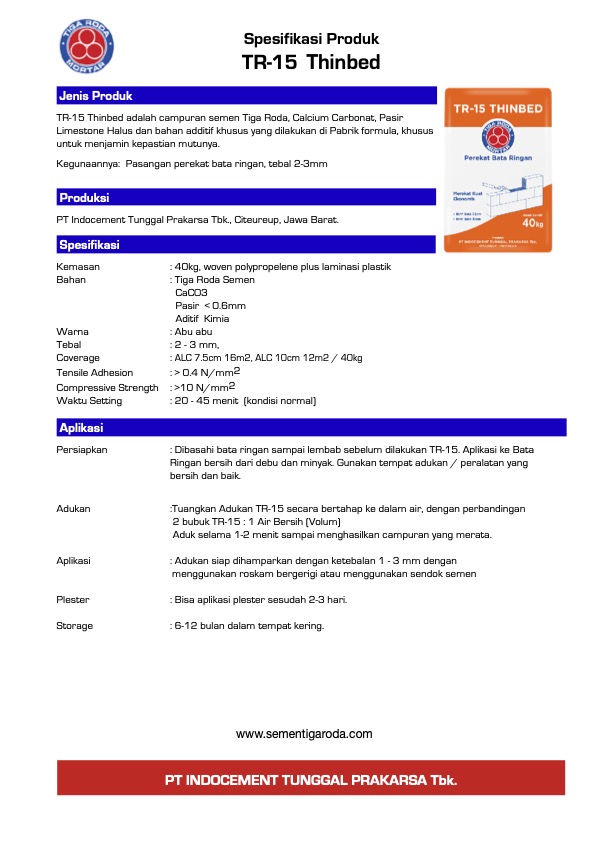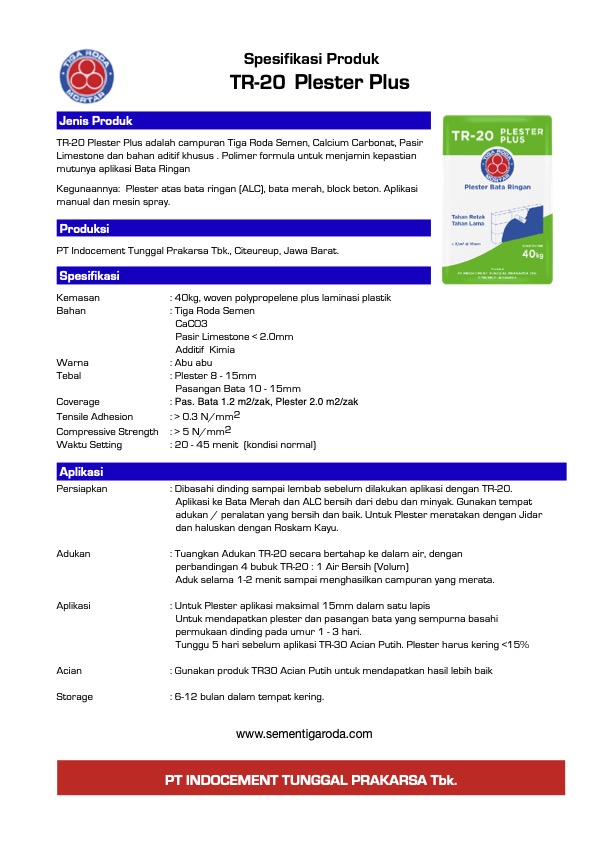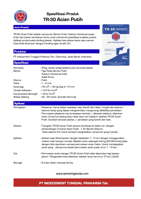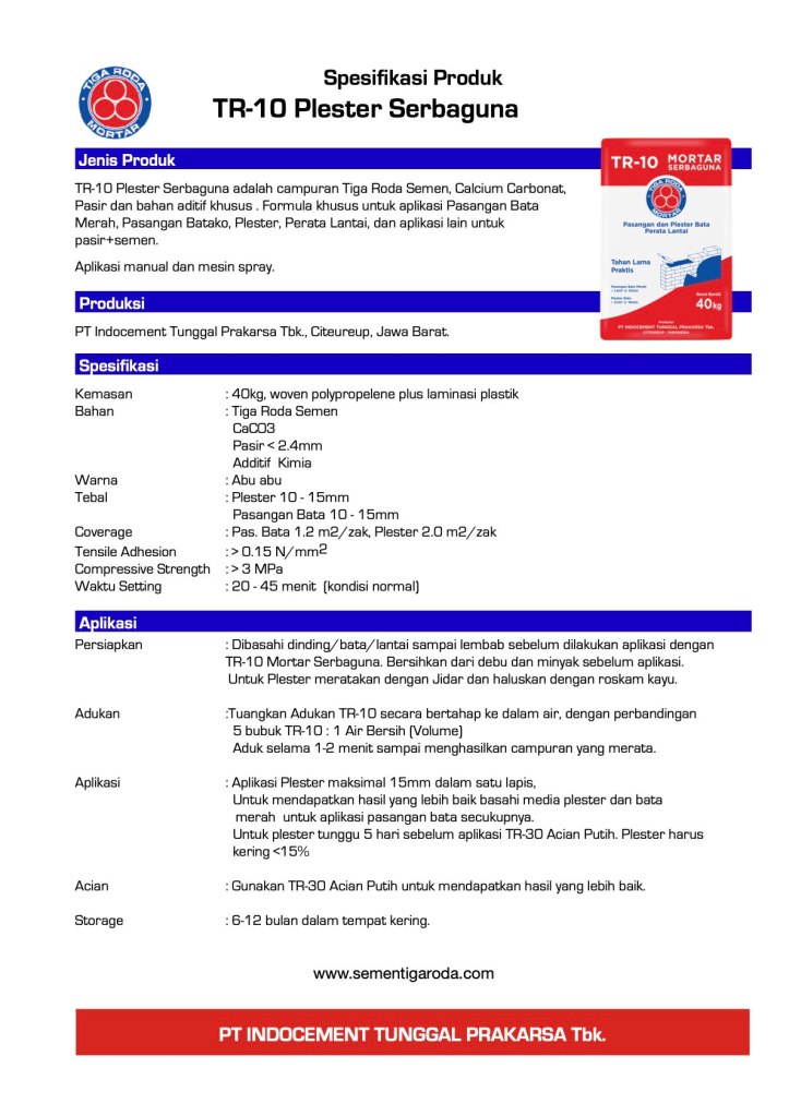 Spesifikasi tr-10-mortar-serbaguna-tdsDownload tr-20-plester-plus-tdsDownload Kalkulasi daya sabar untuk dinding 10m2 tr-15-thinbed-tdsDownload tr-30-acian-putih-tdsDownload Bagikan ini: Klik untuk berbagi di X(Membuka di jendela yang baru) X Klik untuk membagikan di Facebook(Membuka di jendela yang baru) Facebook Suka Memuat...